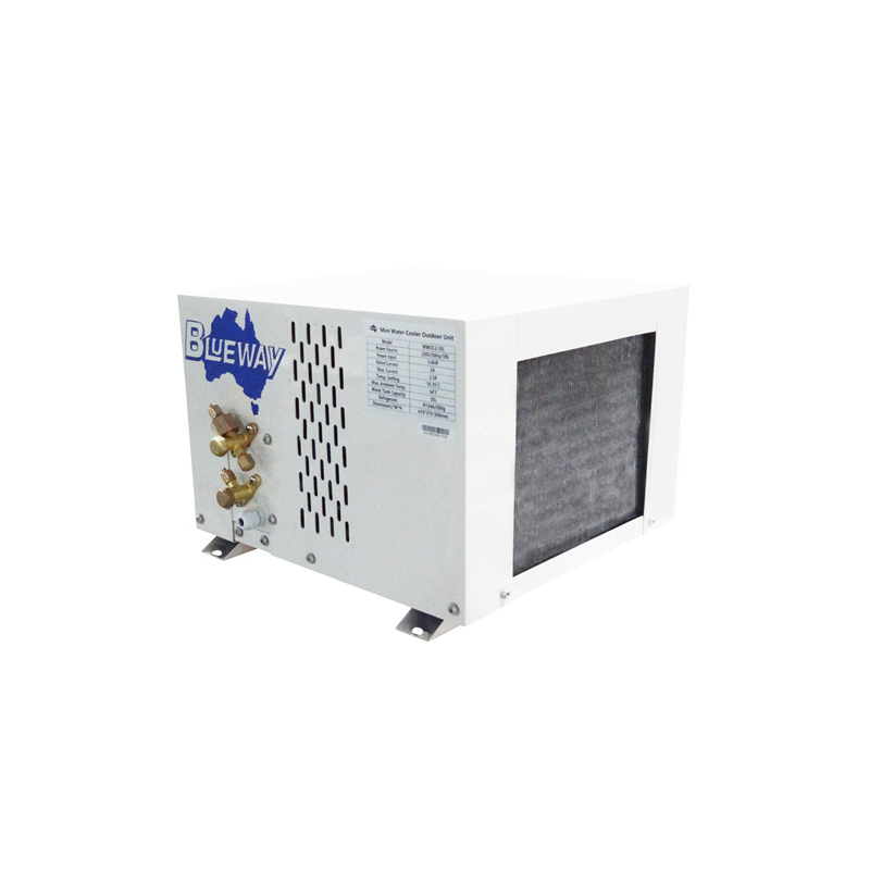 Ваздушно хлађени мини хладњак за воду са подељеним дизајном производа и расхладним средством Р134а, може да охлади температуру воде до 15 ℃. Овај хладњак је идеално решење за туширање и каду за санитарну охлађену воду, применљиво за екстремно вруће лето у заливу.