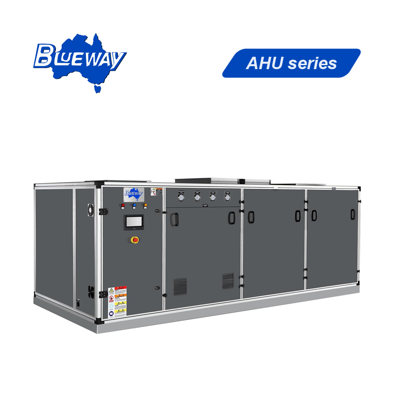 Блуеваи висококвалитетна јединица за руковање ваздухом (АХУ) омогућава флексибилност дизајна која уравнотежује перформансе и економију без угрожавања квалитета, који има другачији скуп потреба, али не ограничавајући се на, свеж унос ваздуха, контролу, грејање, филтрацију и енергију. Генерално, јединица за руковање ваздухом користиће мешавину спољног ваздуха и рециркулираног ваздуха из зграде до филтера, цоол и топлоте. Уређаји за опоравак енергије користе се за пренос топлоте или влаге од исцрпљеног ваздуха до испоруке ваздуха или обрнуто. Ово помаже у смањењу употребе енергије, истовремено пружање свежег ваздуха у зграду.