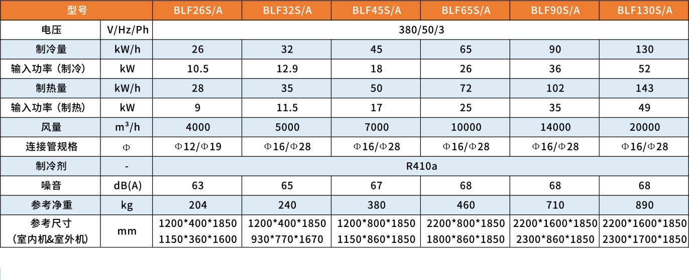 Ова јединица има дизајн подељеног типа, са унутрашњим ормаром који стоји на поду и спољном јединицом која се састоји од једног или више спољашњих модула. Доступан је у два главна модела: једноструко хлађење и хлађење и грејање. Модел за хлађење и грејање може бити опционо опремљен додатним електричним грејањем. Са супериорним перформансама, ниском буком, једноставном инсталацијом и поузданим радом, све јединице се такође могу повезати на систем даљинског надзора са аутоматским откривањем кварова и функцијама аларма.
