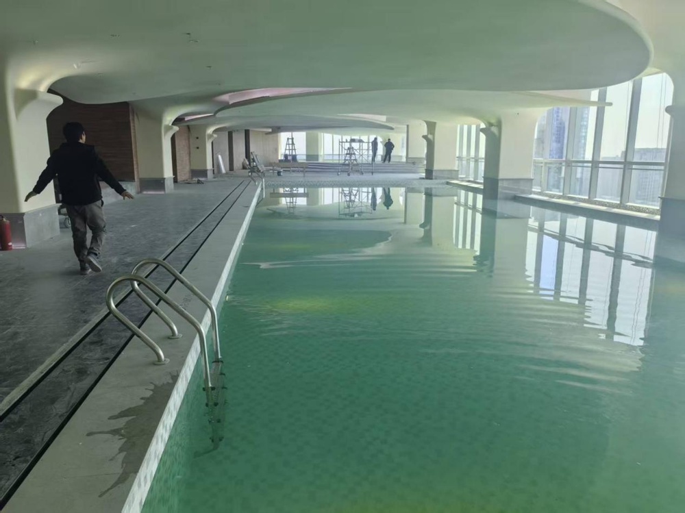 Пратећи исти оријентални естетски дизајн, простор са базеном има панорамске прозоре од пода до плафона преко целог зида са директним погледом на реку Ксиангјианг и острво Оранге. Ноћу, гости могу да уживају у градским светлима и ватромету изнад Оранџ острва, што га чини једним од популарних хотелских места за фотографије.